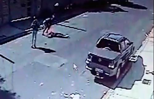 As imagens de uma câmera de segurança mostram a vítima, de 43 anos, caminhando tranquilamente pela Avenida Renato Correia de Almeida. Dois homens aparecem em uma moto atrás dela e imediatamente a cercam e anunciam o assalto. A mulher se assusta, tenta fugir, mas é perseguida pelos criminosos. Um dos bandidos a derruba com um chute e em seguida, desequilibrado o assaltante pisa no rosto da vítima que desmaia.