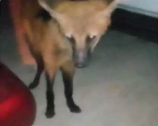 Um lobo-guará foi resgatado pelo Corpo de Bombeiros dentro de uma casa no Jardim Paineiras I, em Ibitinga, na noite de quinta-feira (21)